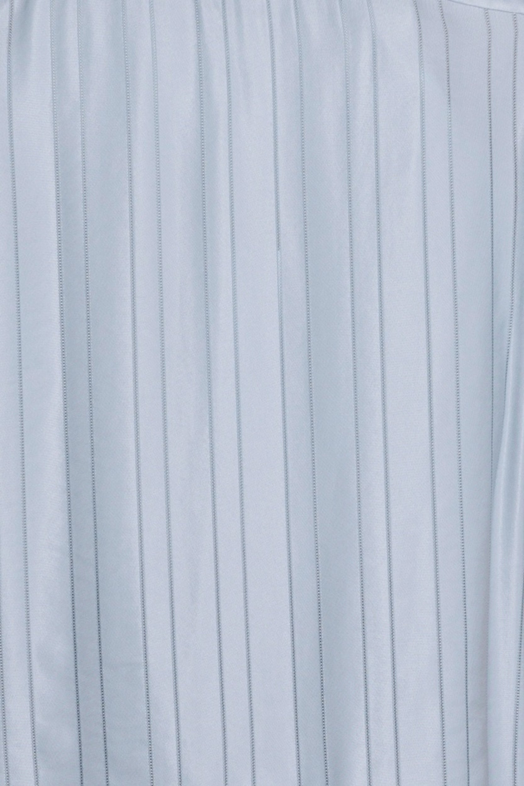 One of our popular silhouettes, the "Valenzuela", is a modern update on a traditional baseball shirt. Cut in a unique blue cupro blend georgette with stripes inspired by the pinstripes on jerseys, the relaxed styling and rich color will provide an elegant summer fit.
